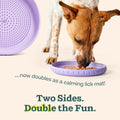 Meet Fly n’ Feed—the flying disc that doubles as a lick mat. Lightweight and durable, it’s perfect for a game of fetch, then flips over to reveal textured lick zones for post-play calm. Easily rolls up for travel, stores flat, and can double as a water dish. Made from tooth-friendly, scuff-resistant rubber that is also dishwasher safe.