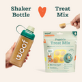 How to use: Mix your Treat Mix and water in the shaker bottle, choosing a ratio of 1:2 or 1:3 to decide how many pops to make per bag. Once mixed, pour the mixture into your Pupsicle Treat Tray and freeze. When ready, open the tray, drop in a pop, and let your pup enjoy homemade happiness!