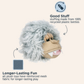 - 4" 2-in-1 plush fetch ball dog toy available in 5 different styles